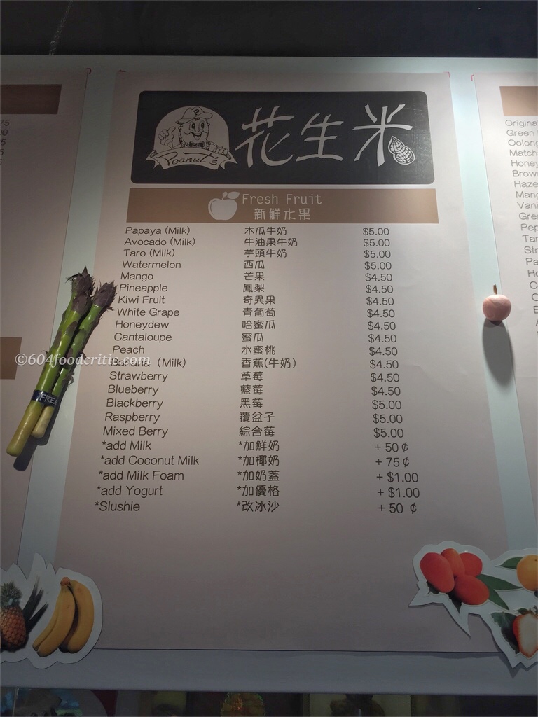Peanut’s Bubble Tea is located at the edge of Richmond Public Market’s second floor food court. They are not the type of food court stand where you walks by and thought “I might as well get this when I’m here”. All these years, patrons have to get out of their ways to get to Peanut’s. Well, we still do that after 20 years because they’re worth the effort.